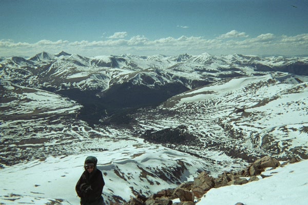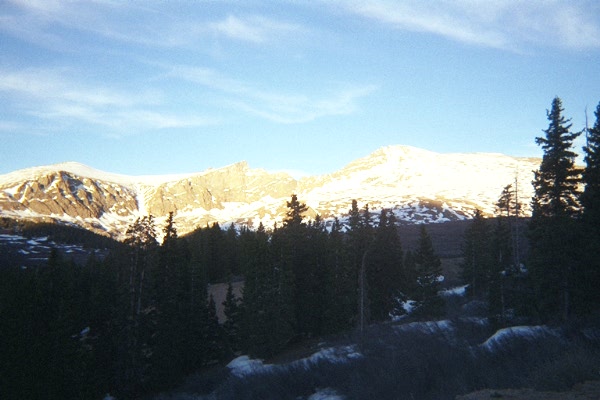 beerevans.jpg Mount Evans and Mount Beirstadt, AKA our objective. Shanon Martin, Jenifer Horne, and Aleshia ????? joined Dan and I, since they were passing through Boulder on their way from Washington D.C. to Yosemite Valley.